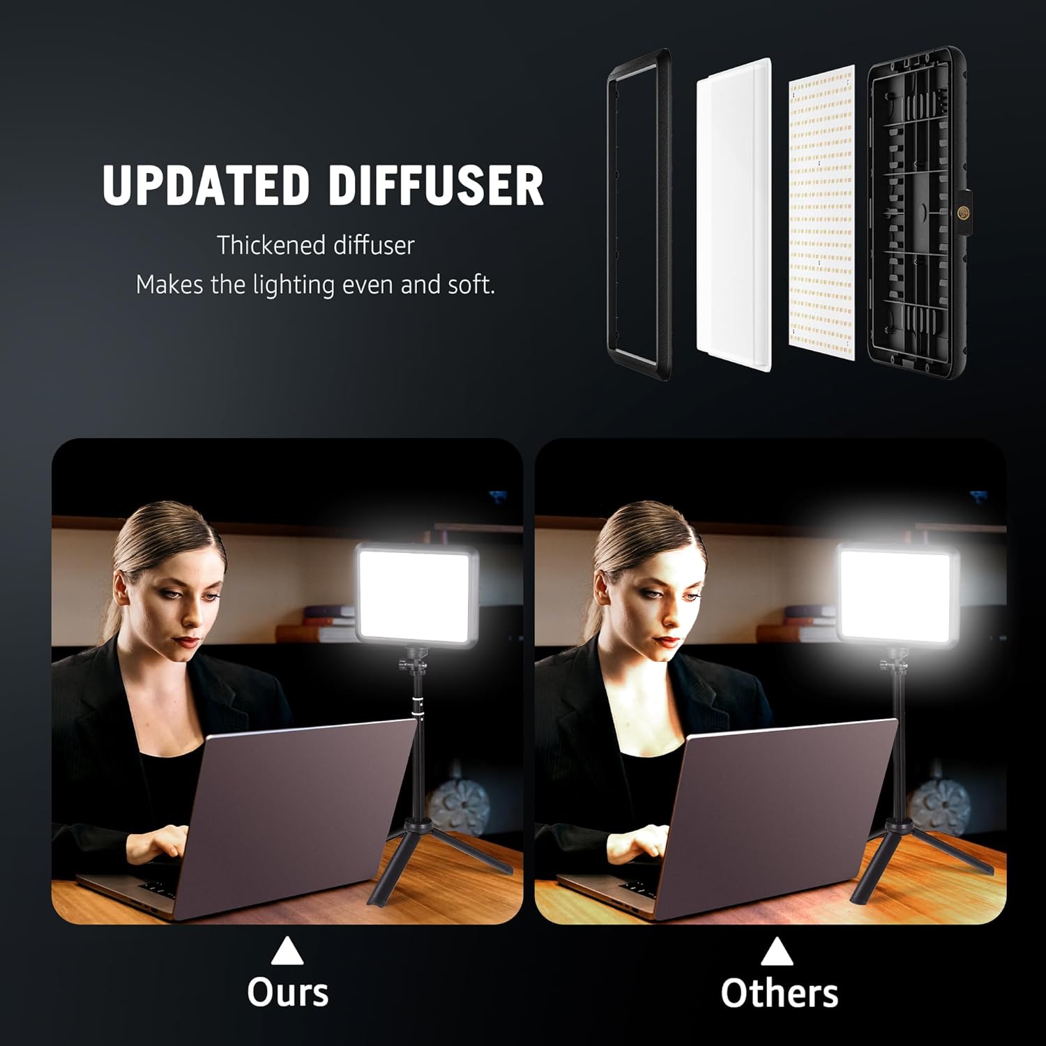 【COMPACT & PORTABLE】Weighing just 1.76 lbs /0.8 kg, the fill light panel measures 6.89″ x 5.31″ x 1.38″ /17.5 x 13.5 x 3.5 cm. Ideal for remote workers, video conference users, Youtuber, Tiktoker, influencer, live streamer, makeup artist.