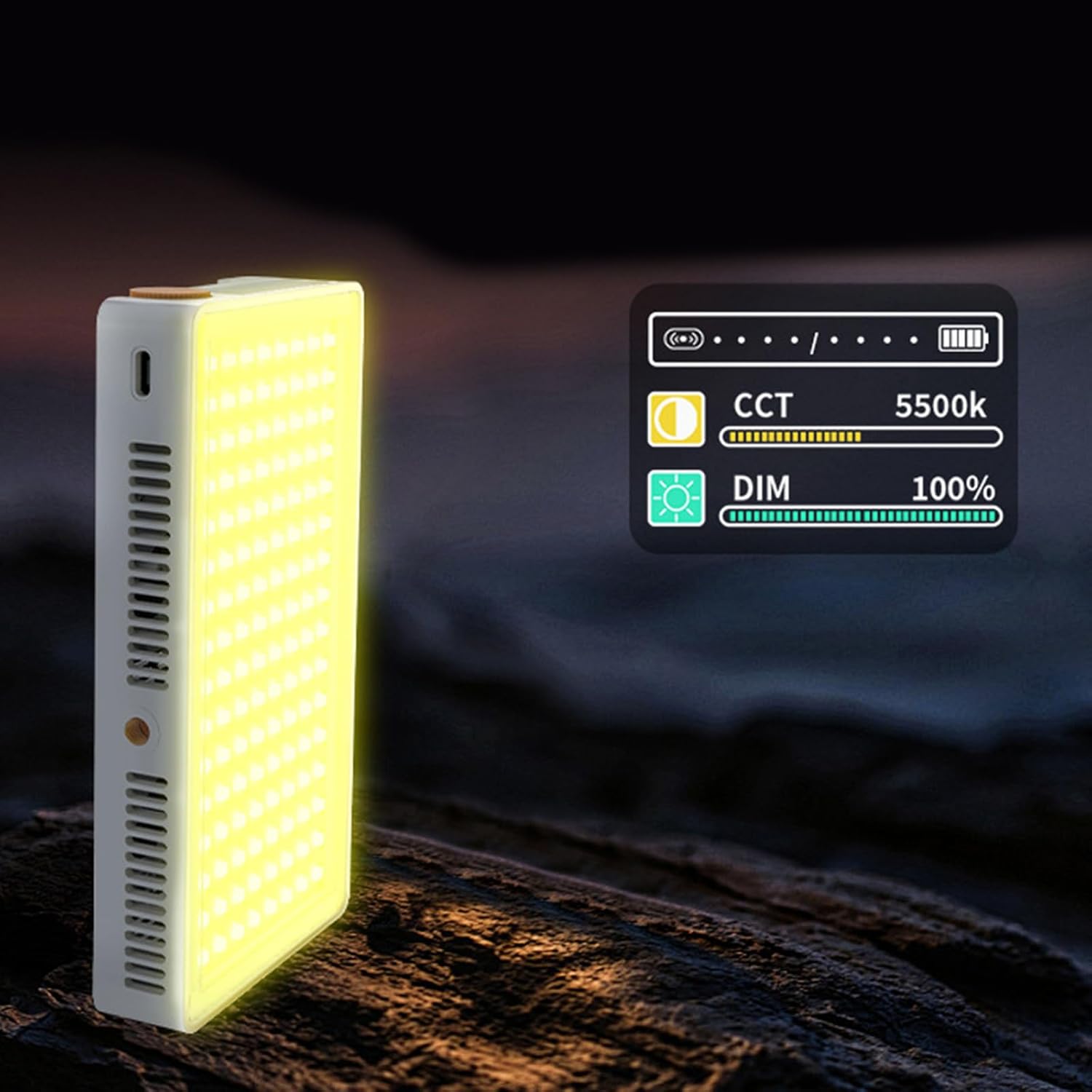 Stay mobile with builts in fast charging battery offering 40minute runtimes and realtime LCD for brightness/CCTs/rgbs adjustments