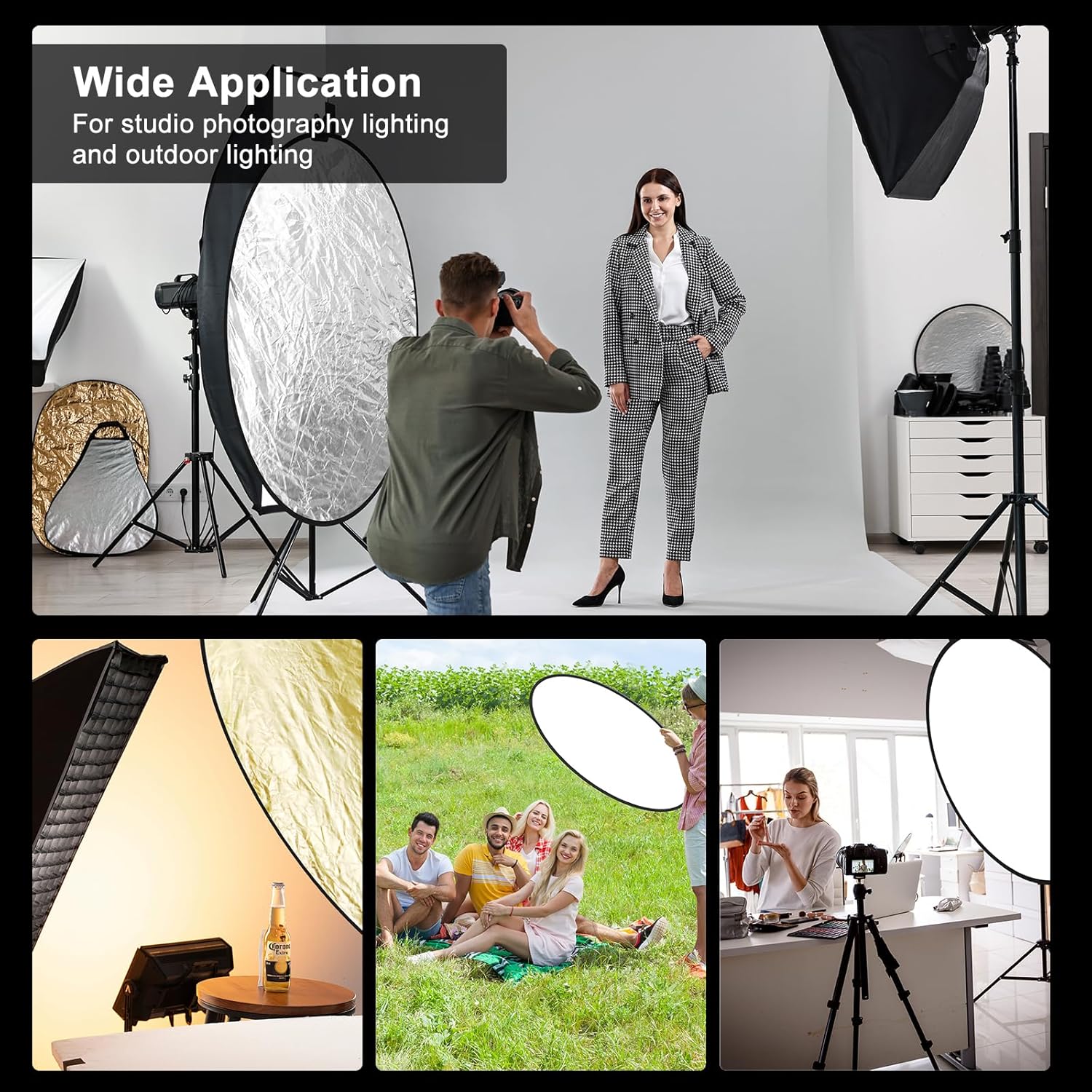 【Commercial-Grade Construction】 Industrial-strength steel rim withstands professional studio use. 210T diamond-weave polyester provides 95% reflectivity. Reinforced stitching at all stress points. Used by professional photography studios worldwide.