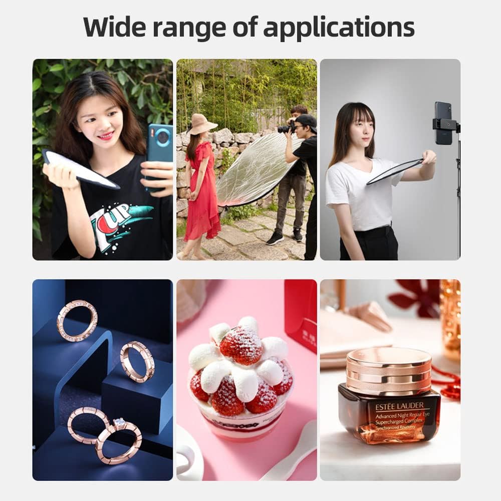 【With a Reflector Clip】Easy to use for your photography, the light reflector kit comes with a reflector clip. Our reflector Clip are constructed of aluminum alloy for durability without added bulk. The sleek and lightweight design fits neatly into carrying bags, making it perfect for photographers on the go