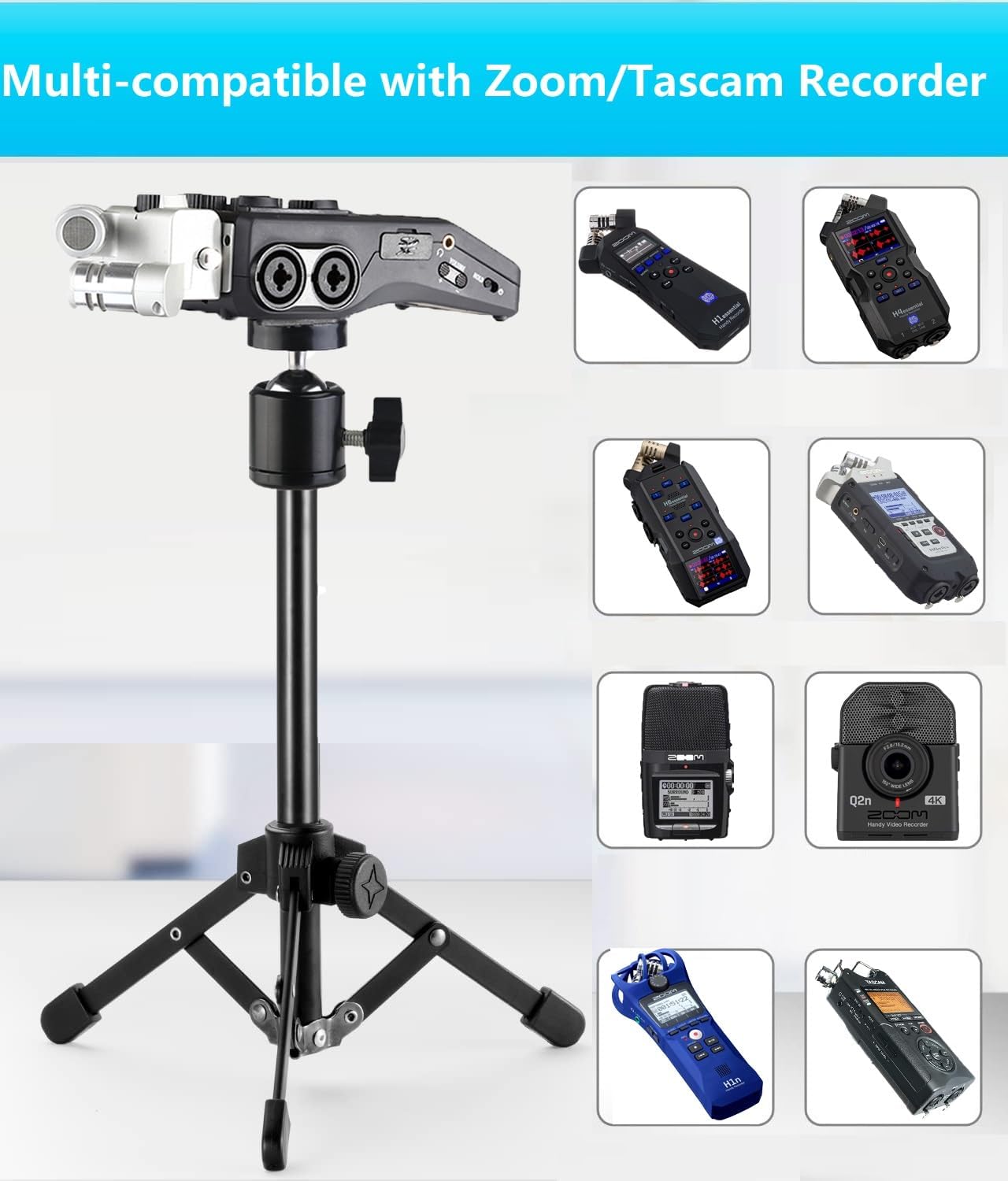 COMPACT SIZE FOR CARRY: Our desk Portable recorder tripod stand is made of high quality iron; Stable triangle tripod design, small size but provides exceptional strength;Net tripod height 15cm/5.9 inches; with ball-head adapter total height 19cm/7.4 inches;