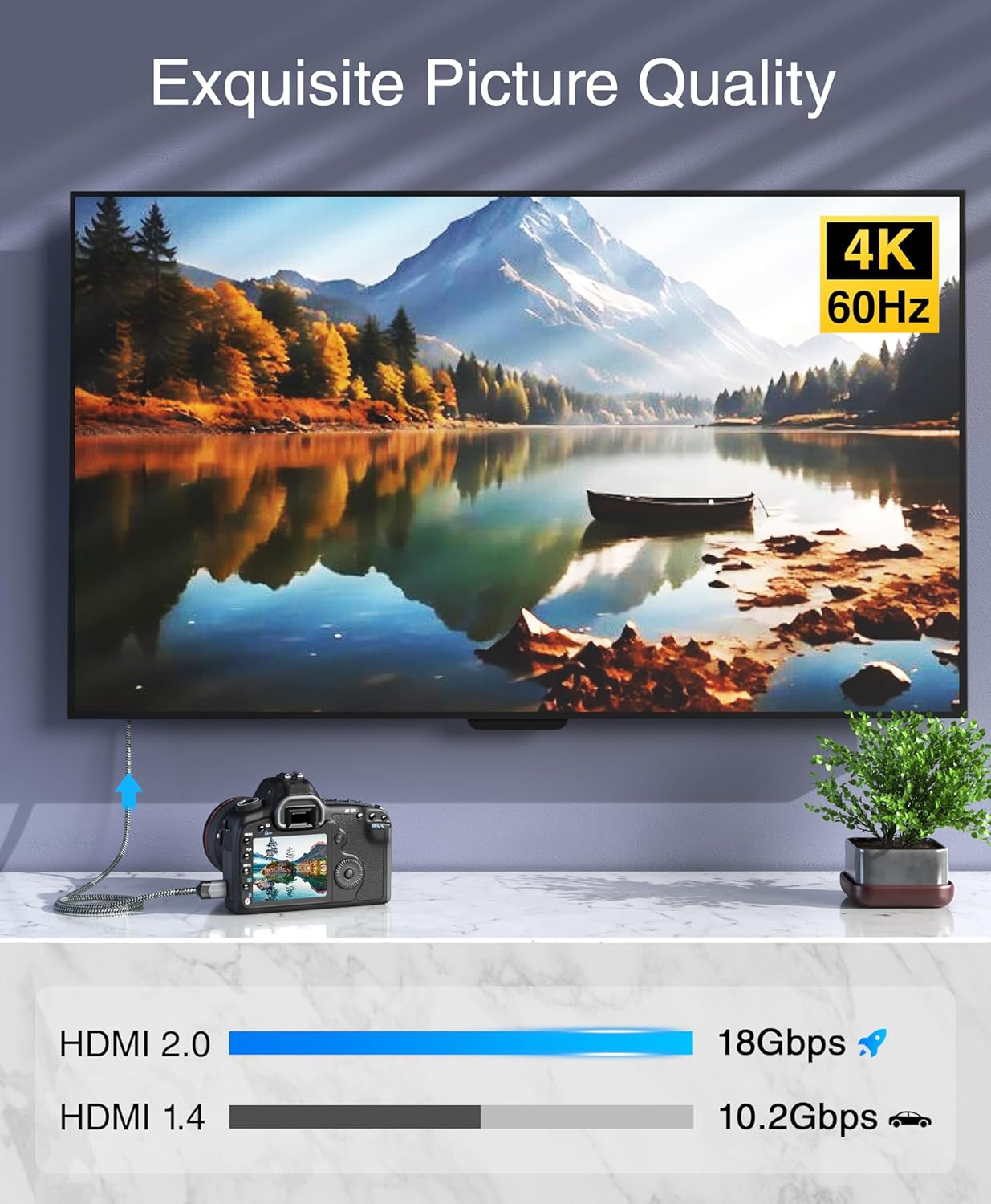 ➤ 4K 60HZ MINI HDMI: BlueRigger Mini HDMI to HDMI cord supports resolution up to 4K 60Hz, Ultra HD, 3D, HDMI 2.0, 18Gbps high speed, audio return and uncompressed multichannel digital audio; 4K video requires a 4K equipped source and output display
