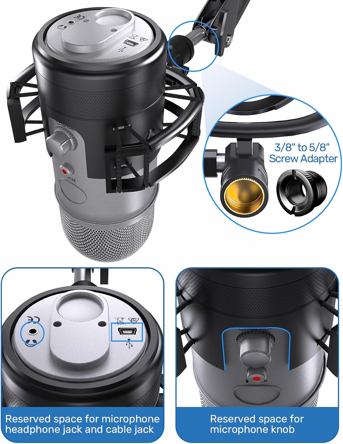 【Universally compatible with mic boom arm stands】This custom shock mount has a 5/8-inch interface with 1 3/8-inch ************************************************************* and is compatible with most cantilever mounts (boom arms) and tabletop mounts on the market. 【Mic Angle Adjustable 】This microphone shock mount is designed with a knob that allows you to adjust the angle of the microphone up to 180 degrees at will to achieve ideal recording results.