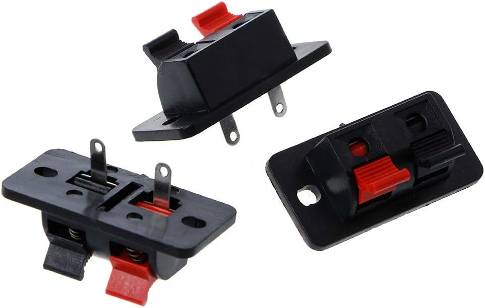 2 Pins Terminals, 1 Red, 1 Black, 2 Positions, Spring Load Design, Push Type, Speaker Terminal.
