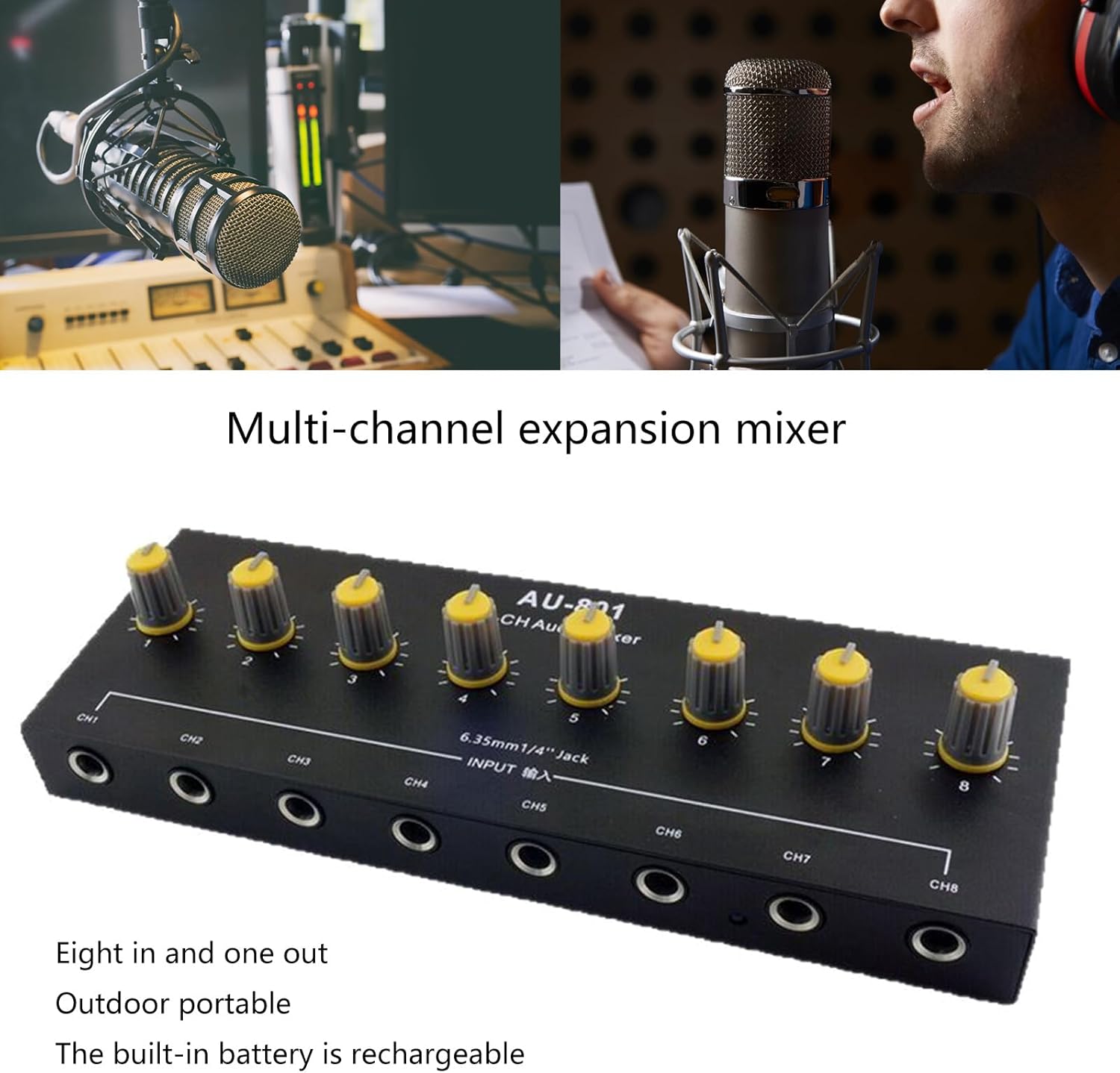 Portable 8 Input 1Out Instrument Microphones Expander Line Mixer For Outdoor Use With Independently Volumes Control