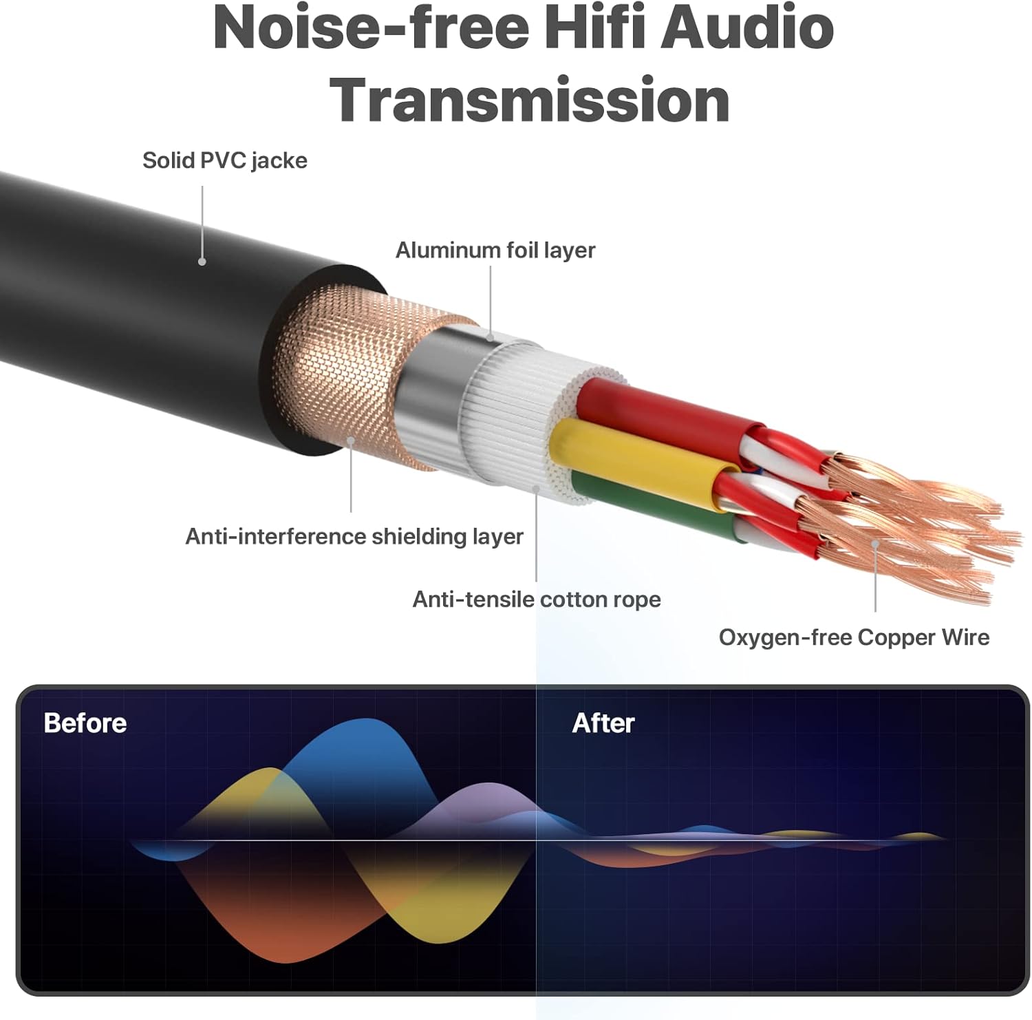 ➤ Hi-Fi Quality- The Snake Cables made of high-density oxygen free copper, which can provide stable transmission and high-purity audio signals. The copper braided spiral-wound shield can lower electrical resistance and minimize noise rejection, keep stable performance and high purity sound quality.