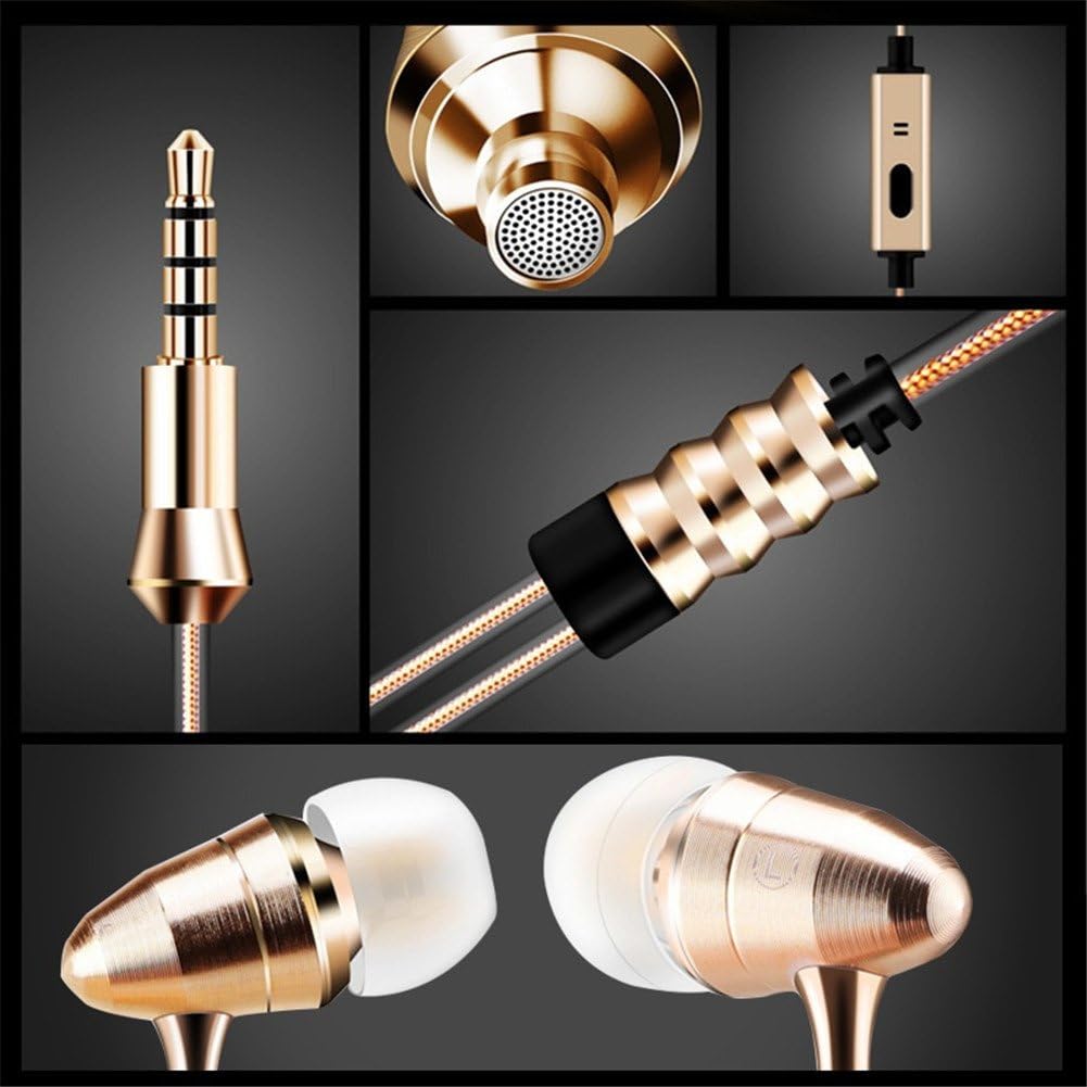 GS Fashion Gold Bullet Earphones 3.5mm In-Ear Headphones Heavy Bass DJ Professional Headset With Mic For Smartphones and Music Player