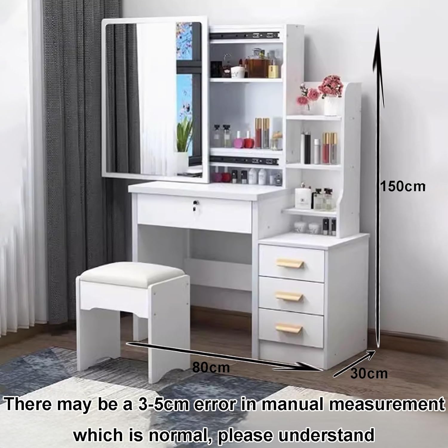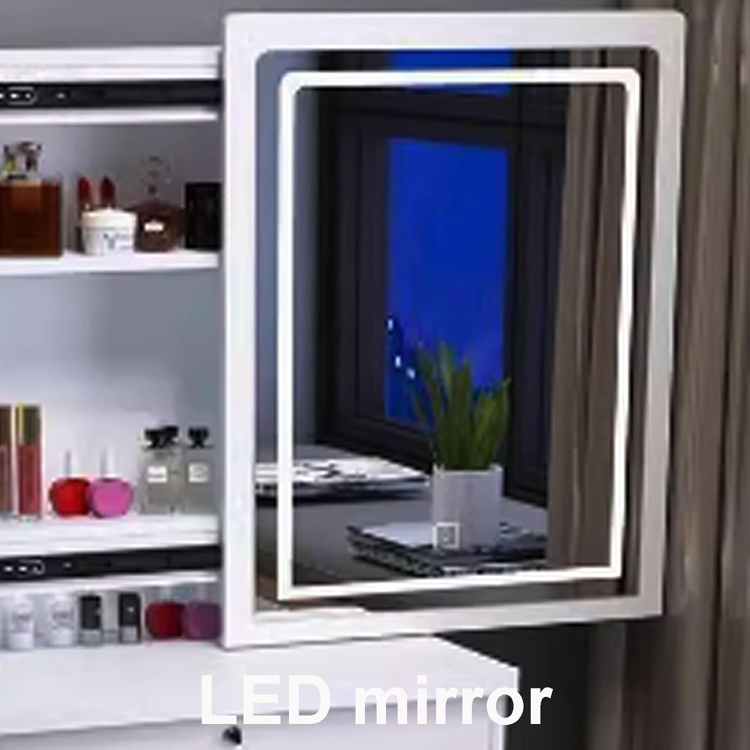 GUQASDV Make up Vanity with Chair, Makeup Vanity Desk, Vanity Set with Mirror, Makeup Desk with Drawers Engineered Wood for Home, Makeup Studio(White,LED mirror)