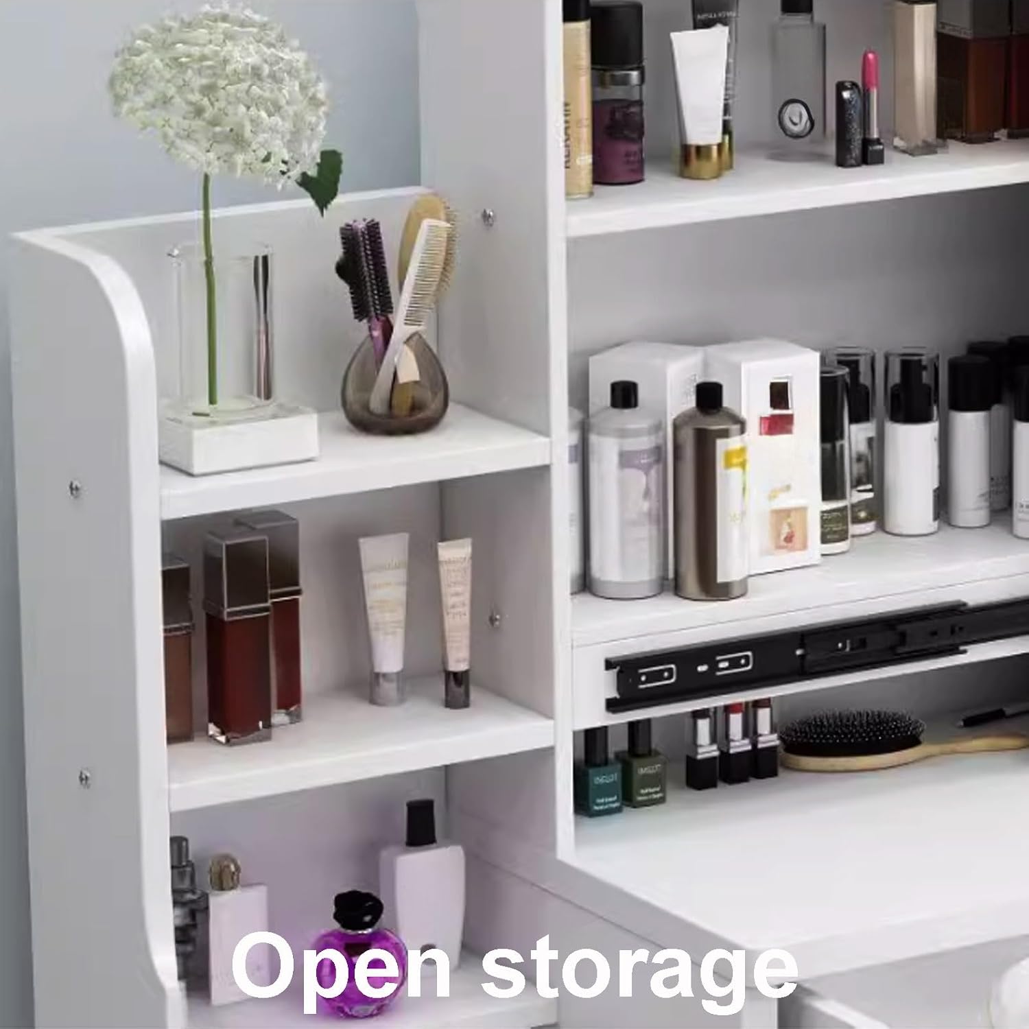 【Open storage】designed with large desktop and storage shelves, makeup desk with drawers and mirror could offer large open storage space for often-used cosmetics