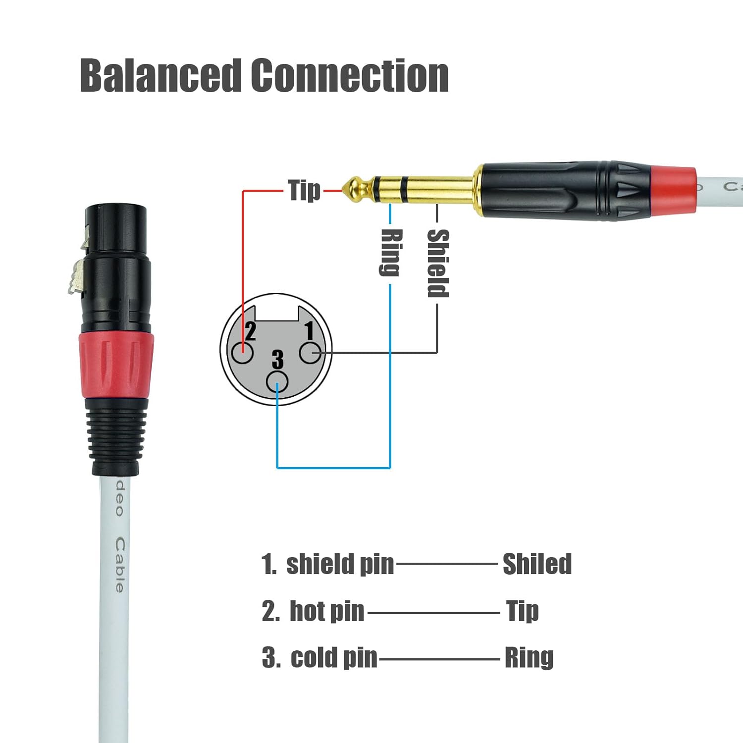 ● 1/4Inch Connector: TRS(Tip-Ring-Sleeve) type, 6.35mm quarter inch, gold-plated, balanced