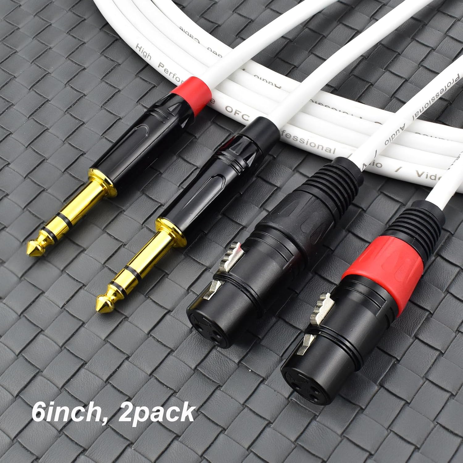 Balanced XLR Female to 1/4 Inch TRS Microphone Cable Adapter, 0.5FT 2Pack