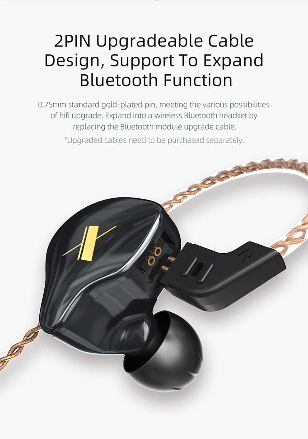 【2PIN Upgradeable Cable Design】0.75mm standard gold-plated pin, meeting the various possibilities of Hifi upgrade. You can change and improve the sound by changing cables, and experience different sound quality. Such as expand into a wireless bluetooth headset by replacing the bluetooth module upgrade cable. *upgraded cables need to be purchased separately.