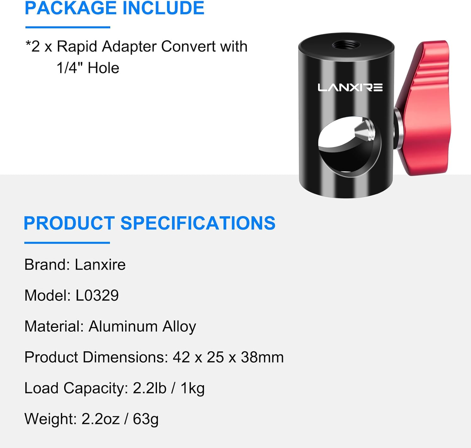 Made of high strength aluminum alloy and stainless steel, sturdy and durable, weight only 0.14lb/62g, the rapid adapter convert is easy to carry.