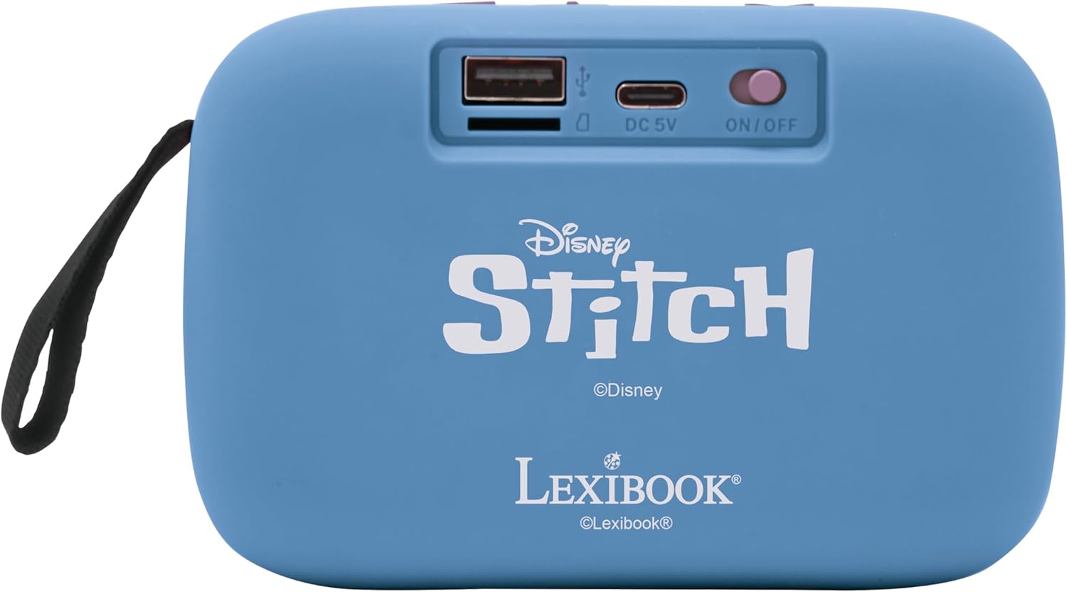 LEXIBOOK, Disney Stitch, Portable Bluetooth Speaker, Wireless, USB-C, SD/TF card, Rechargeable battery, Blue, BT018D