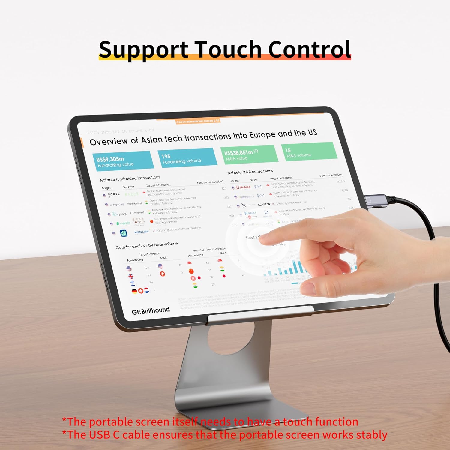Multifunctional Design: This HDMI to Type-C conversion cable not only transmits HDMI signals but also features USB-A power and USB-C power ports. The USB-A power port supplies power to the chip inside the HDMI to USB-C conversion cable, supporting touch panel functionality. The USB-C power port supplies power to devices connected via the USB-C interface. *Note: We recommend using a PD19W charger.
