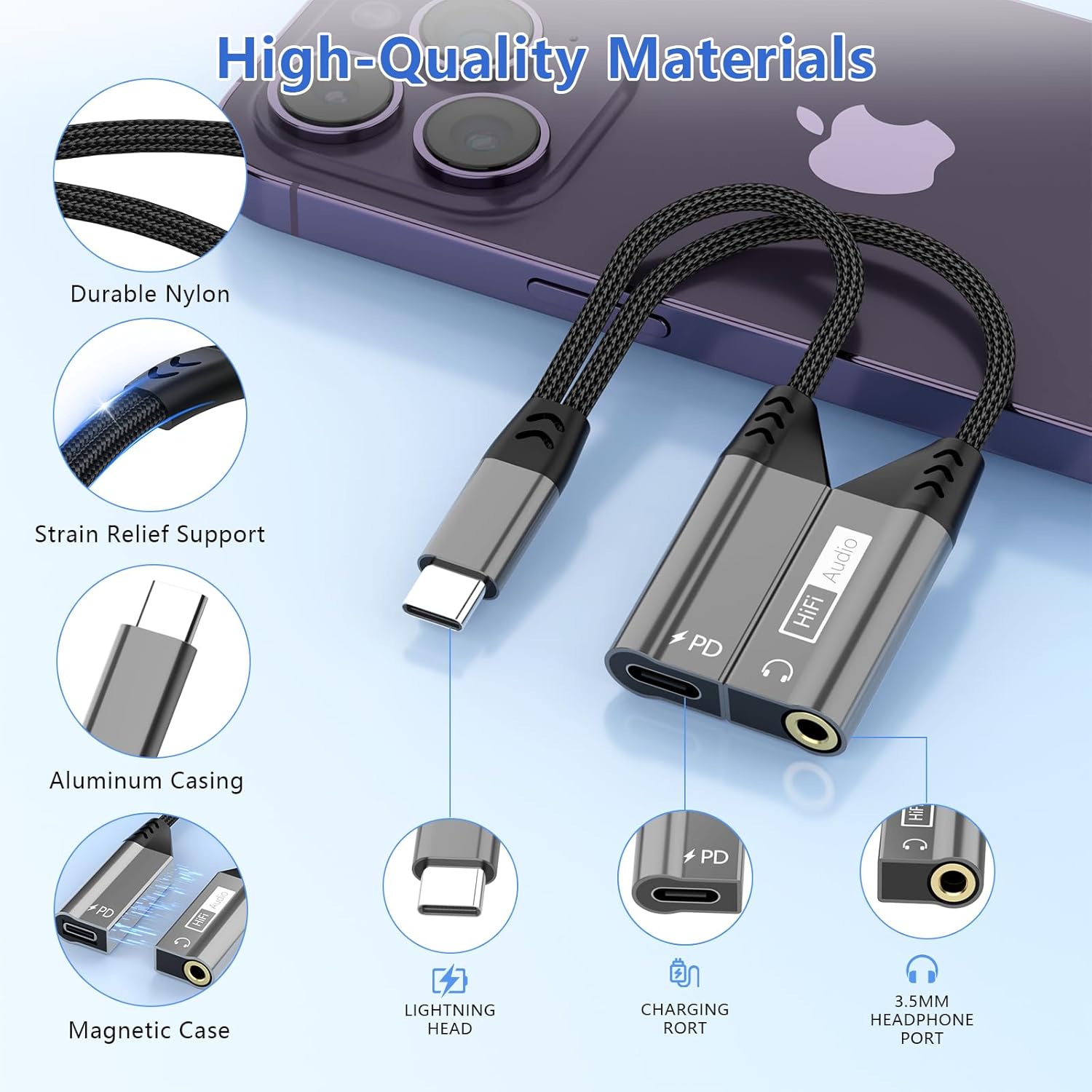 【Easy to Carry and Use】This iPhone 15 audio adapter is small and exquisite, with a length of 13 cm, easy to carry. Magnetic USB C to 3.5mm jack adapter is plug and play, no need to install any driver or application. This compact iPhone 15 splitter headphone and charging cable adapter is compatible with up to 32bit&384Khz, you can get higher quality sound from it.