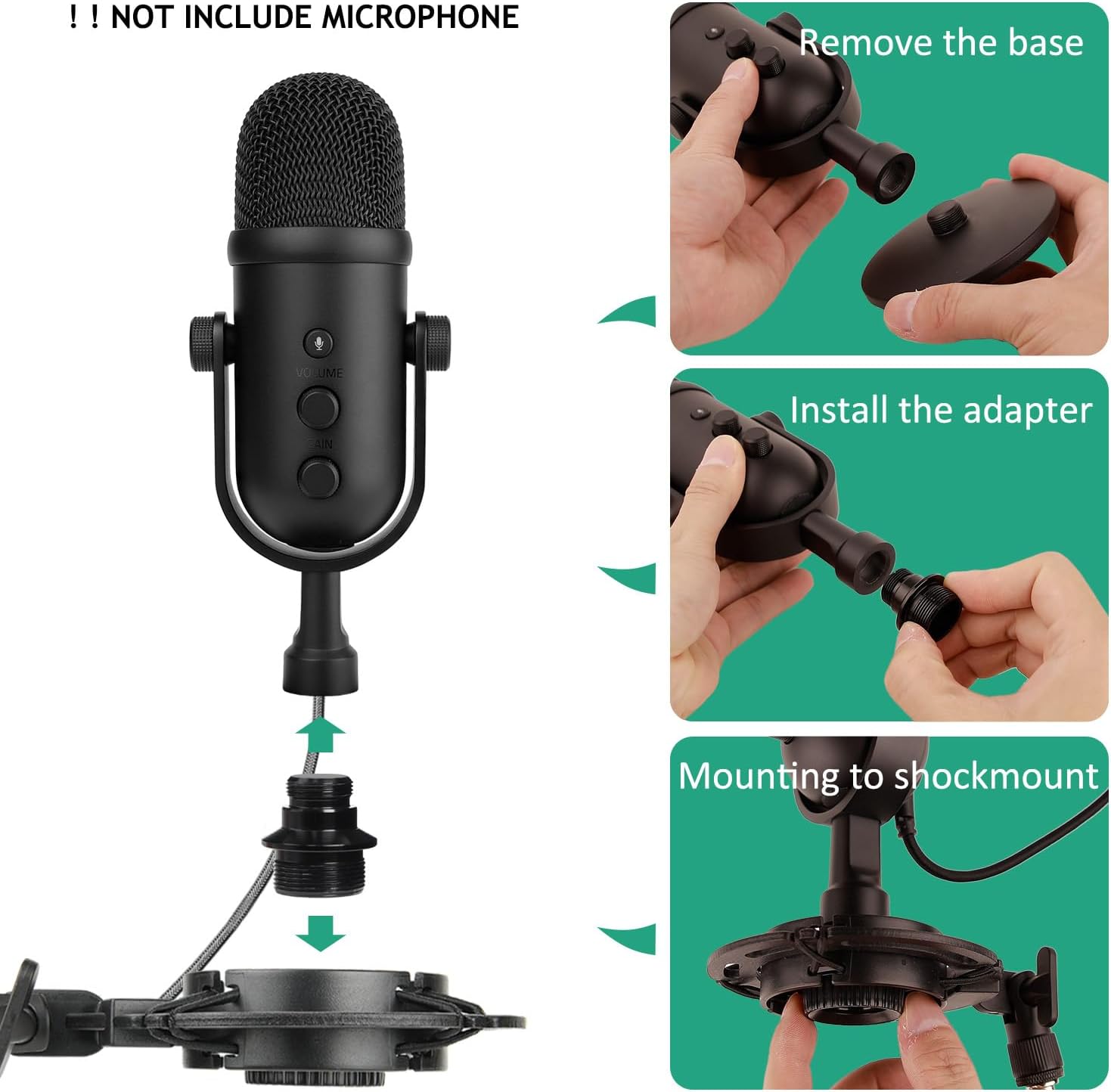 A professional shock mount isolates most of the physical vibrations, floor bumps and crashes that occur during recording, improving the quality of your recordings, and comes with a screw adapter for the Razer Seiren V2 Pro microphone.