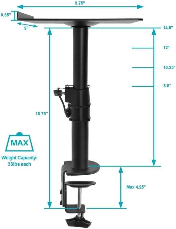 Introducing the Monoprice Universal Clamp-On Height-Adjustable Desktop Speaker Riser Mounts—the perfect solution to elevate your audio experience to new heights. Engineered with precision and designed for versatility, these speaker mounts seamlessly integrate into any workspace, providing an unparalleled combination of functionality and aesthetics. Designed to accommodate a wide range of speaker sizes and shapes, our universal clamp-on mounts ensure a secure and stable fit for your desktop speakers. The adjustable height feature allows you to customize the speaker’s position, ensures optimal sound projection, and creates an immersive listening experience. Whether you’re a music enthusiast, a content creator, or someone who values premium audio quality, these mounts offer a transformative solution to enhance your workspace.