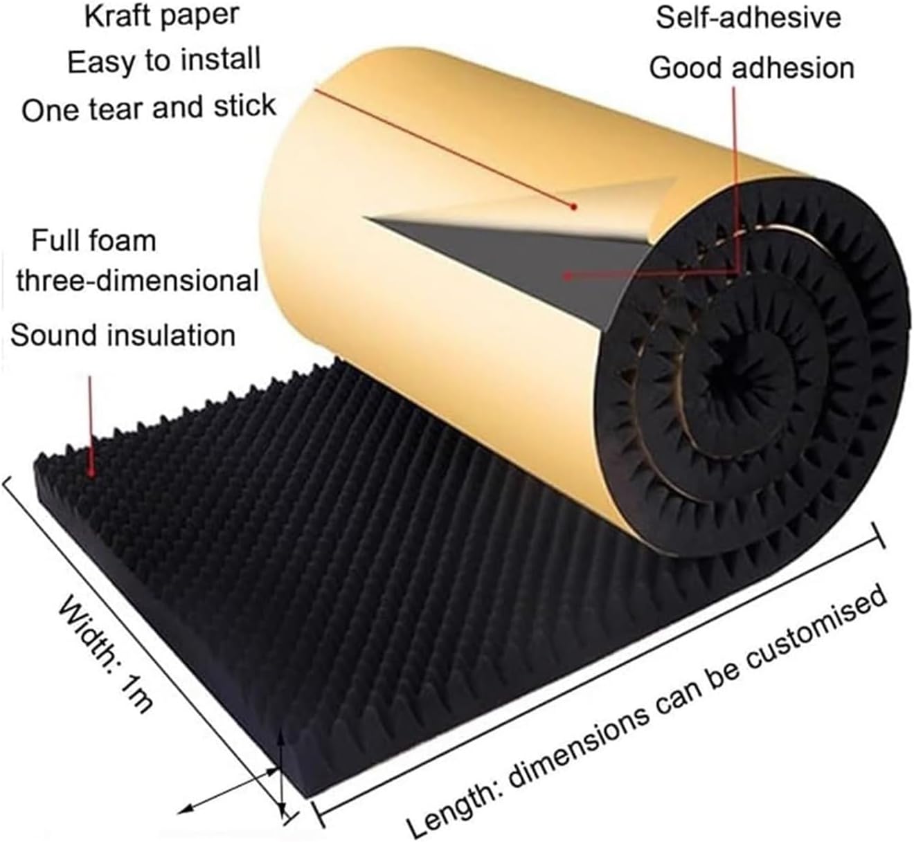 Easy to Use: This soundproofing material can be easily cut into various sizes. The back of the soundproof mat is self-adhesive tape,peel off the protective paper and stick it where you need for easy installation