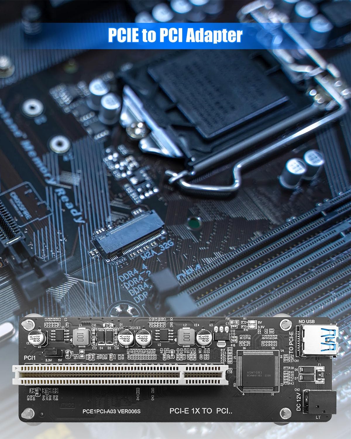 Be the first to review “PCIe to PCI Adapter with USB 3.0 Cable Compatible with Audio Interfaces Video Capture Cards Industrial Devices, Dual/Single Slot Converter for Legacy PCI Cards”