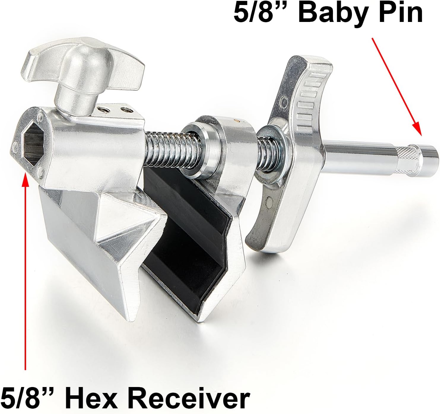 This Super Viser Clamp with 2″ Jaw Range, 5/8″ Hex Receiver and 5/8″ Baby Pin is full metal construction, it is extremely strong, easy to operate and quite useful for photo studio video.