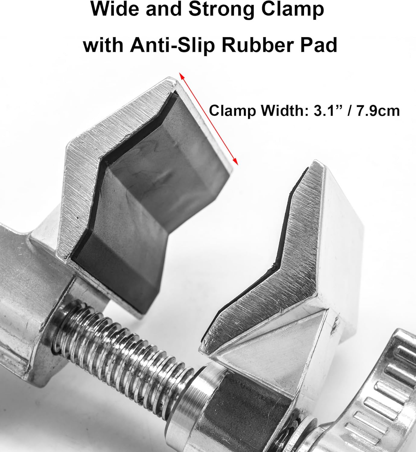 Wide Opening Range Jaw can mount securely onto round tubes, crossbar, square table, desks or any unique shape up to 2″ / 50mm.