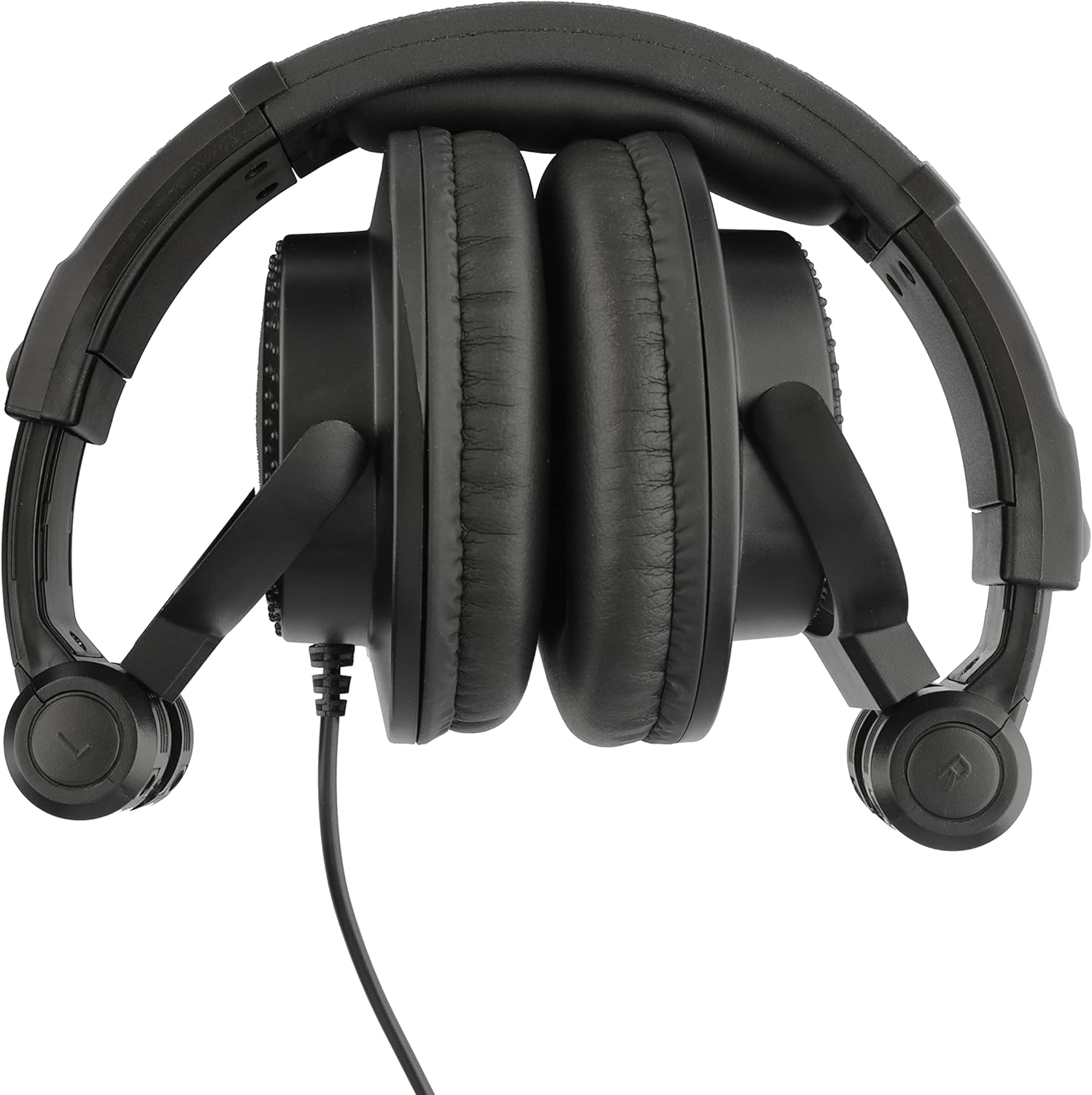 The headphones are suitable for DJ applications and include a tuned bass response for low-end clarity. The pivoting earcups are ideal for one-ear or on-the-shoulder monitoring. A padded headband offers to keep you comfortable during a lengthy session.