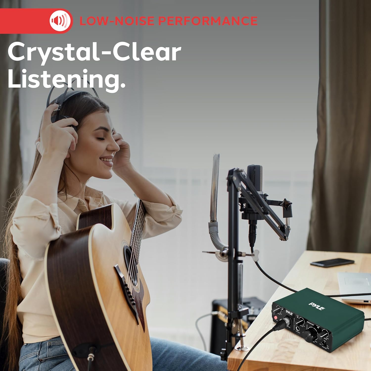 Pyle USB Audio Interface for Recording, Songwriting, Streaming & Podcasting, 2IN 2OUT 24bit/192kHz ASIO, High-Fidelity Studio Quality, Low-Noise, Rugged Metal Chassis, 5.91’’ x 3.94’’ x 1.75’’ Inch