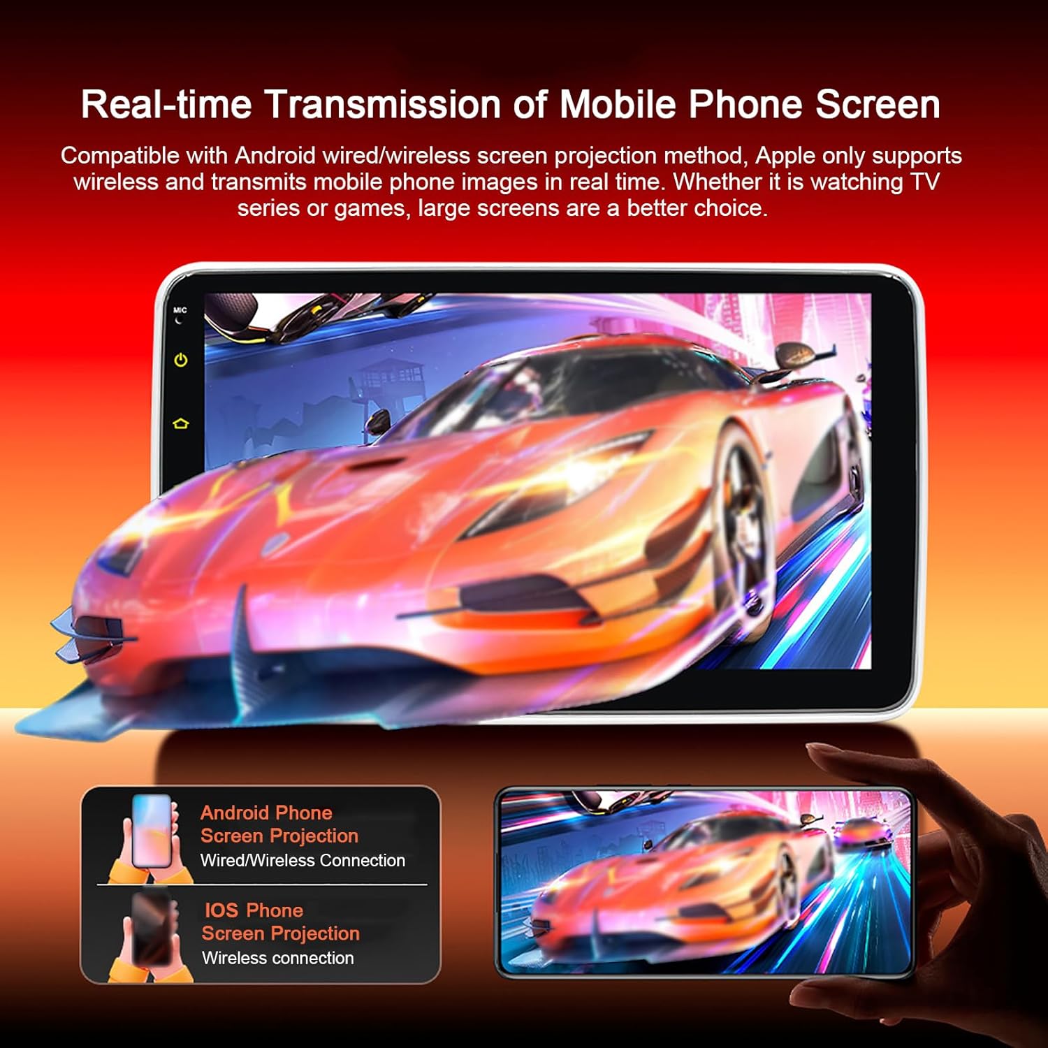【WIRELESS SCREEN MIRRORING】This headrest TV is compatible with Android wired/wireless screen projection method. Ios only supports wireless and can transmit mobile phone images in real time.