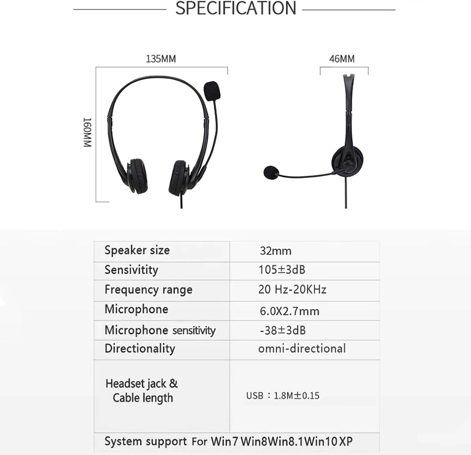 Features: Noise Canceling Microphone: Built-in rotating noise-cancelling microphone can block unwanted background noise for accurate voice captures, ideal for clear conversation. Wide Compatibility: USB plug and play, no external power or drive required. Compatible with desktop computers, laptops and other USB audio devices. In-line control: With in-line control, you can easily control the volume up and down, mic mute and speaker mute. Protect ears: Avoid momentary high-pitched sounds and sounds with peaks above 118 DB, protect your hearing. Specifications: Plug type: USB Frequency response range: 20-20K (Hz) Impedance: 32 (Ω) Sensitivity: 100 (dB) Wire length: 1.8 (m) Speaker diameter: 40 (Φmm ) Earplugs/headphones material: PVC Earphone cable material: TPU Utility: General purpose, ordinary earphones, noise canceling earphones, voice earphones, audio earphones, audio earphones, audio earphones, audio earphones, video earphones, audio headphones, video headphones, gaming audio and video headphones, gaming earphones headphones. Package list: 1 x USB headset with microphone