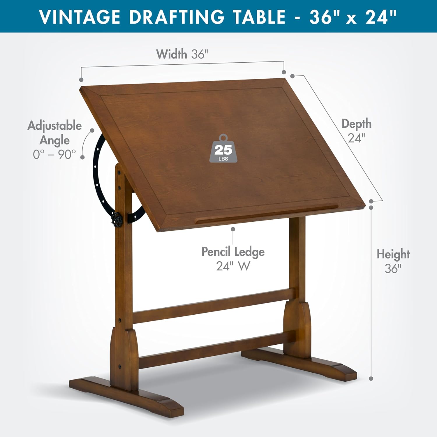 VINTAGE DRAFTING TABLE: Classic antique design and finish that is reminiscent of turn-of-the-century furnishings; Perfect for setting up and diving into a variety of creative projects, including painting, drawing, sketching, writing, and more
