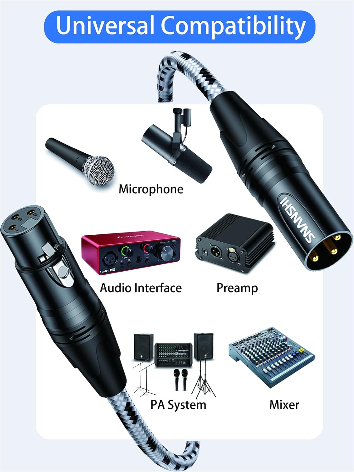 Universal Compatibility: This Balanced microphone cables designed for equipments with 3-pin XLR connectors Works seamlessly with microphones, mixers, audio interfaces, and other XLR-compatible devices, making it perfect for studio recording, live performances, or podcasting