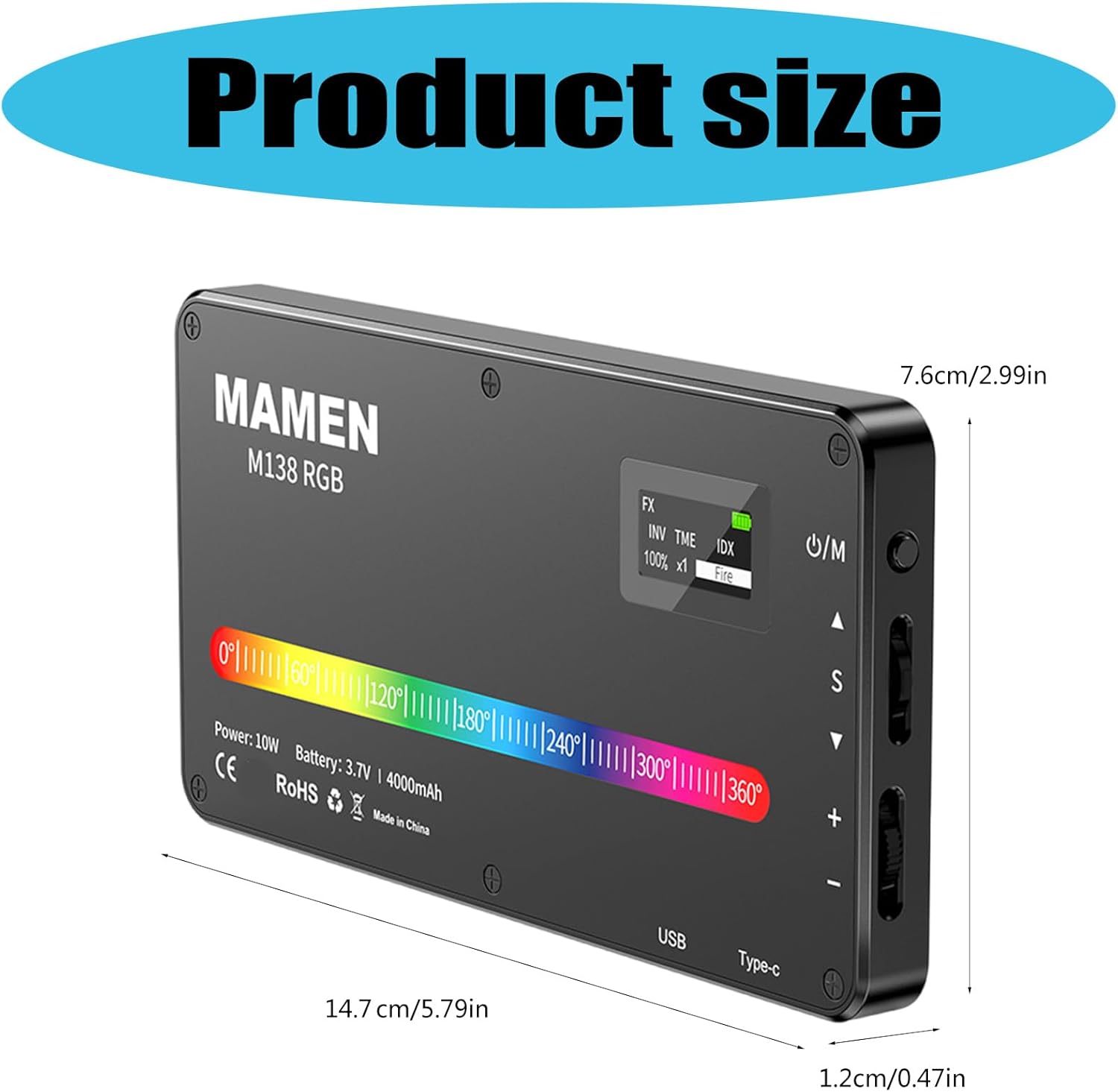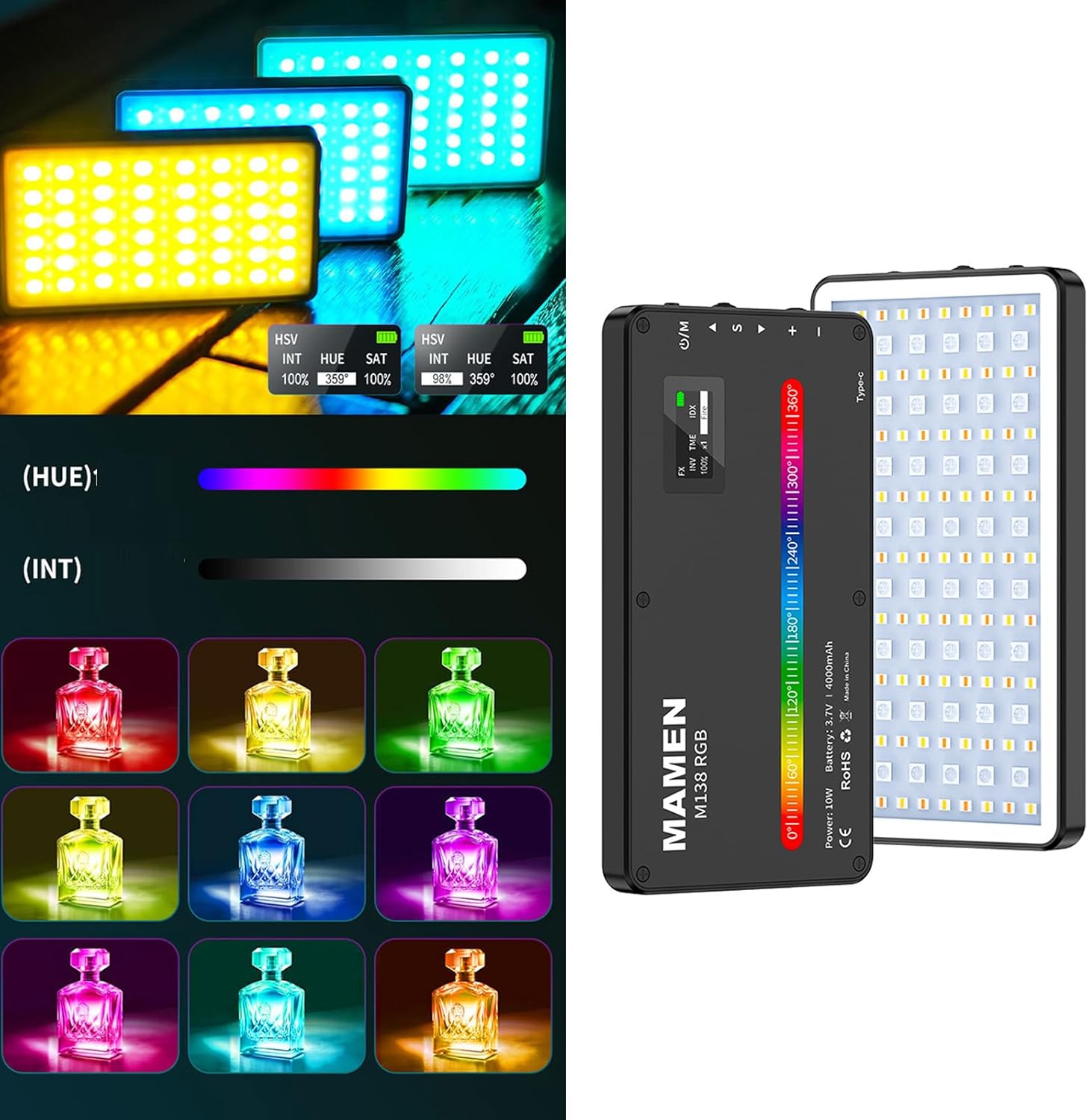 Elevates your content creation with this LED Video Light offering 360 degree color customization and adjustable color temperature from 2500K to 9000K for professional lighting control