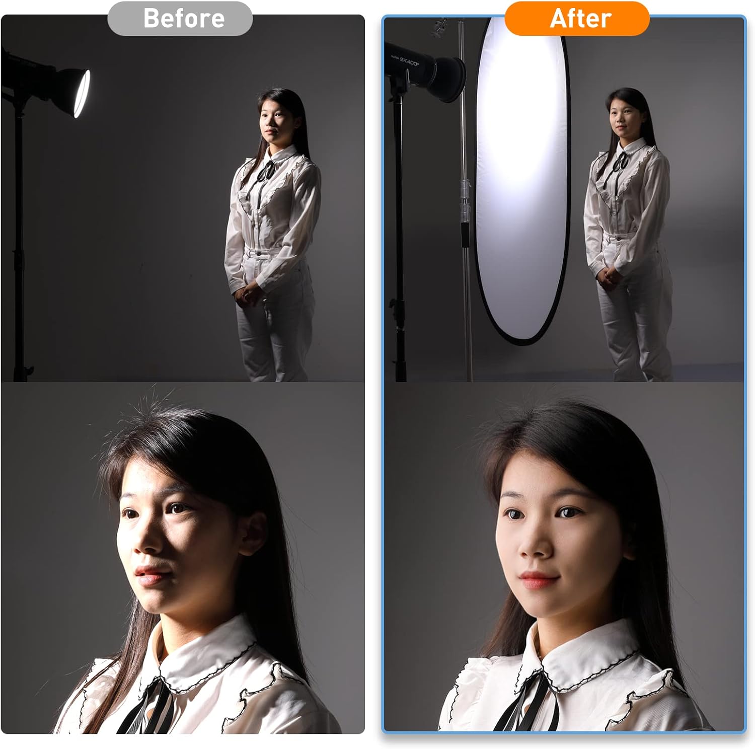 【Wide Application】Pop up soft light diffuser works well with flash or natural light, perfect for hiding the sun’s flare, can soften and diffuse light in a more balanced way, works ideal for studio outdoor portrait, product photography, video photo shooting.