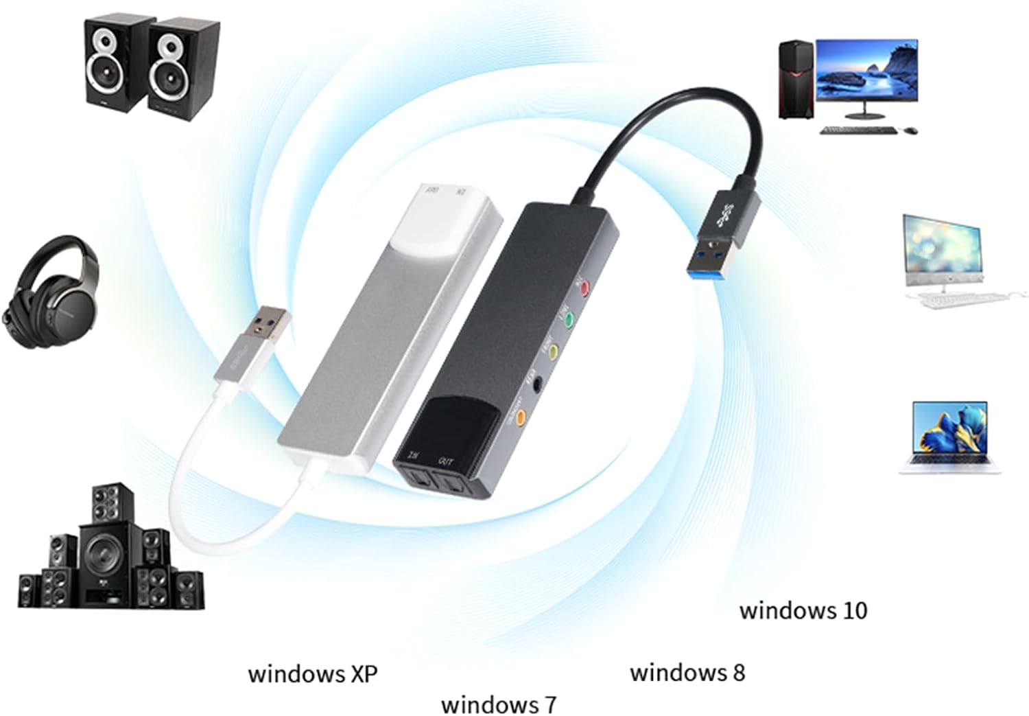 USB Sound Sound Card With 5.1 Channel Sound Adapter For Home Theater And Gaming Setups
