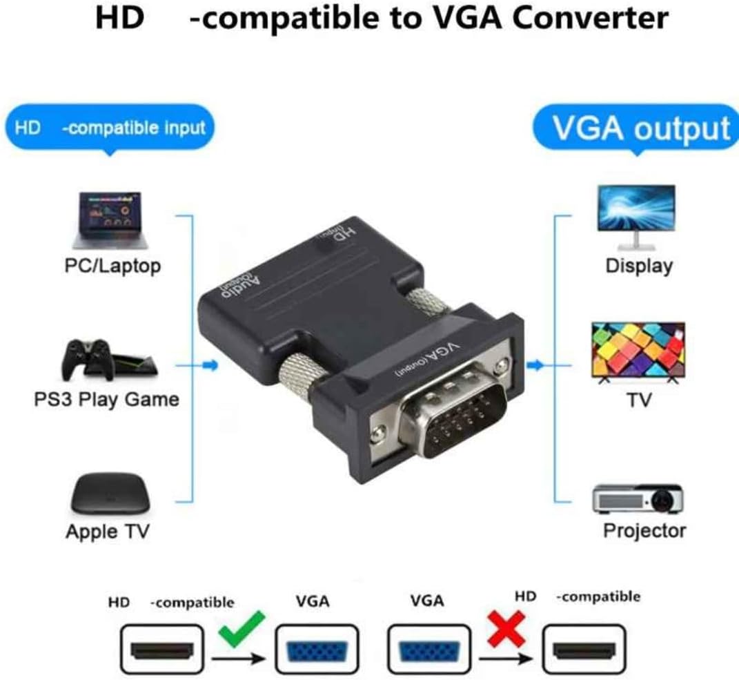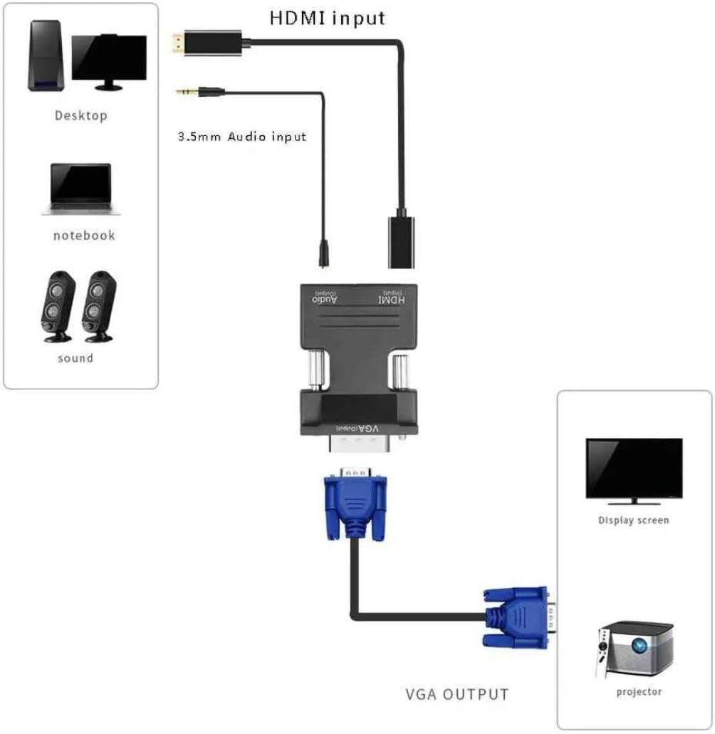 Elevate your connectivity experience with our high-performance HDMI to VGA adapter, designed to seamlessly connect HDMI-enabled devices to VGA-equipped monitors, projectors, and HDTVs. This adapter is perfect for expanding the functionality of your devices, allowing you to enjoy high-definition video and audio transmission without the need for external converters.