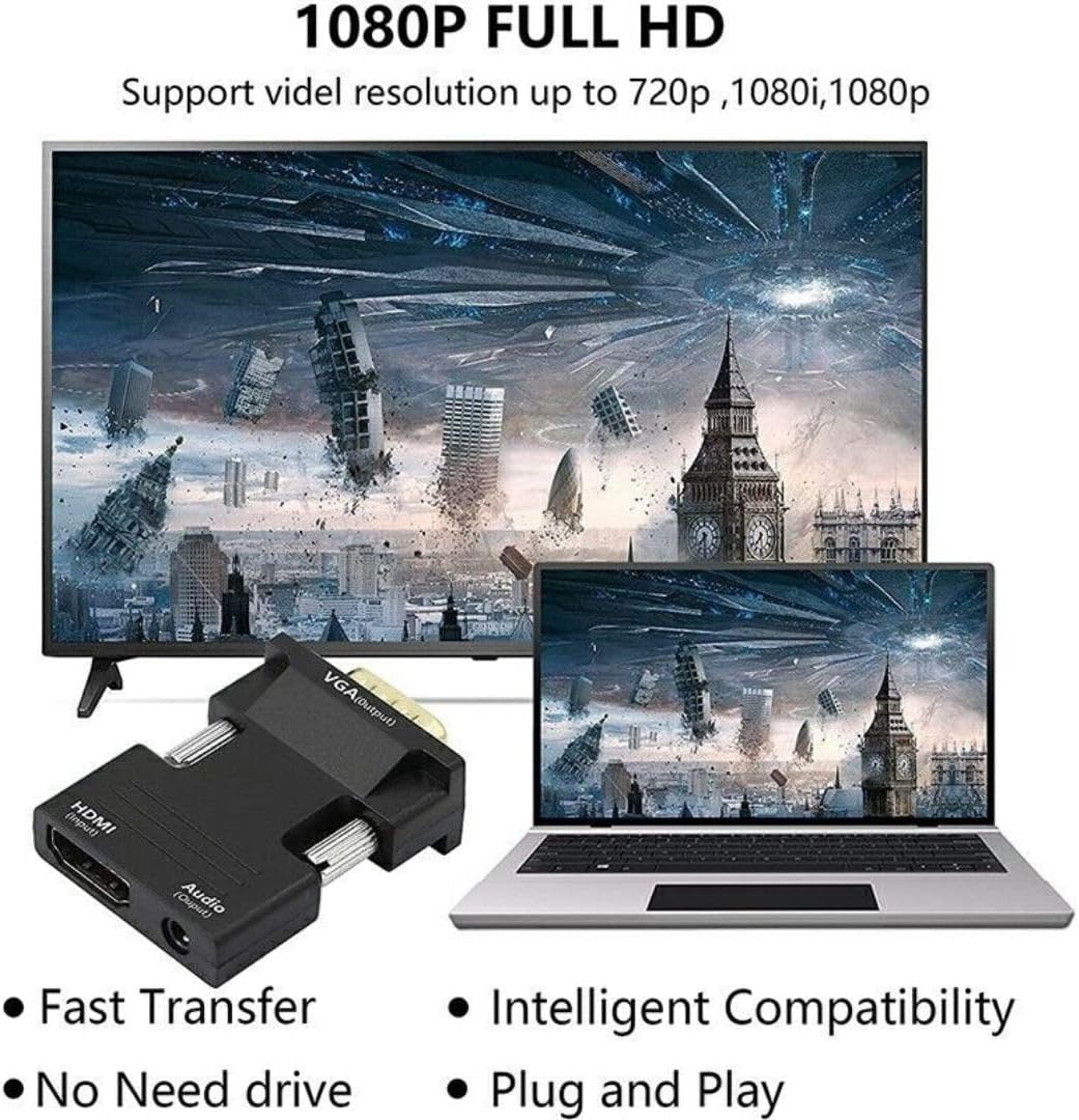 VGA to HDMI Converter Adapter, 1080P HDMI Female to VGA Male Converter Connector Adapter with Full HD Audio Video Output, HDMI to VGA Converter Connector for Monitor TV Computer Laptop PC Projector