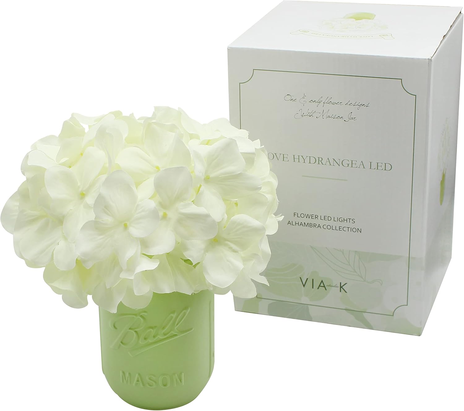 ADORABLE FLOWER LIGHTING Experience the magic of the Mongceil Hydrangea LED Mood Lights from VIA K STUDIO, a captivating fusion of the timeless beauty of hydrangea flowers and mesmerizing LED lights. Enhance your interior decor with this exquisite piece that creates a truly enchanting visual experience. Night lamp with artistic design. This unique night lamp features an artistic metal flower design, making it an eye-catching addition to your space. The delicate craftsmanship of hydrangea flowers combined with the glowing LED lights transforms them into a stunning focal point in any room. It is not just a lamp, but a work of art. Perfect for the bedroom ambience. Brighten up the ambience of your bedroom with this elegant table lamp. The soft, soothing glow of the LED lights creates a romantic and soothing atmosphere, making it an ideal addition to your bedtime. Let the gentle radiance of the lamp envelop you in relaxation and tranquility. CLASSIC AESTHETIC The Mongceil Hydrangea LED mood lights feature a timeless white hue that effortlessly complements any decor style. This classic aesthetic adds a touch of elegance and sophistication to your living space, enhancing its overall beauty and charm. Versatile interior decor lighting. Whether used as a night lamp, table centerpiece, or decorative accent, this VIA K STUDIO creation is a versatile lighting solution that brings both beauty and serenity to your home. Experience the perfect blend of art and lighting as this enchanting piece will take your decor to new heights. Brighten up your interior decor with the enchanting Mongceil Hydrangea LED Mood Lights. Let the artistic craftsmanship and gentle lighting of this exquisite piece transform your space into an oasis of beauty and tranquility.