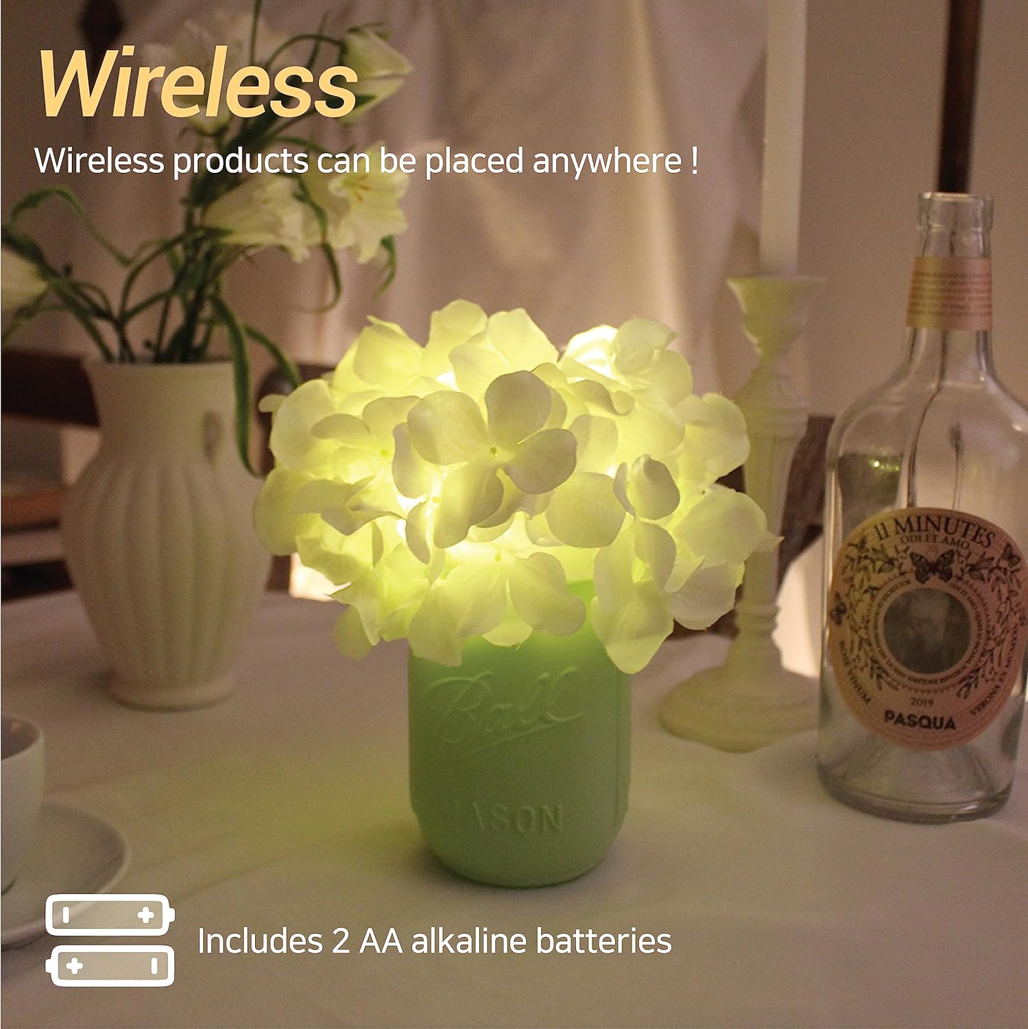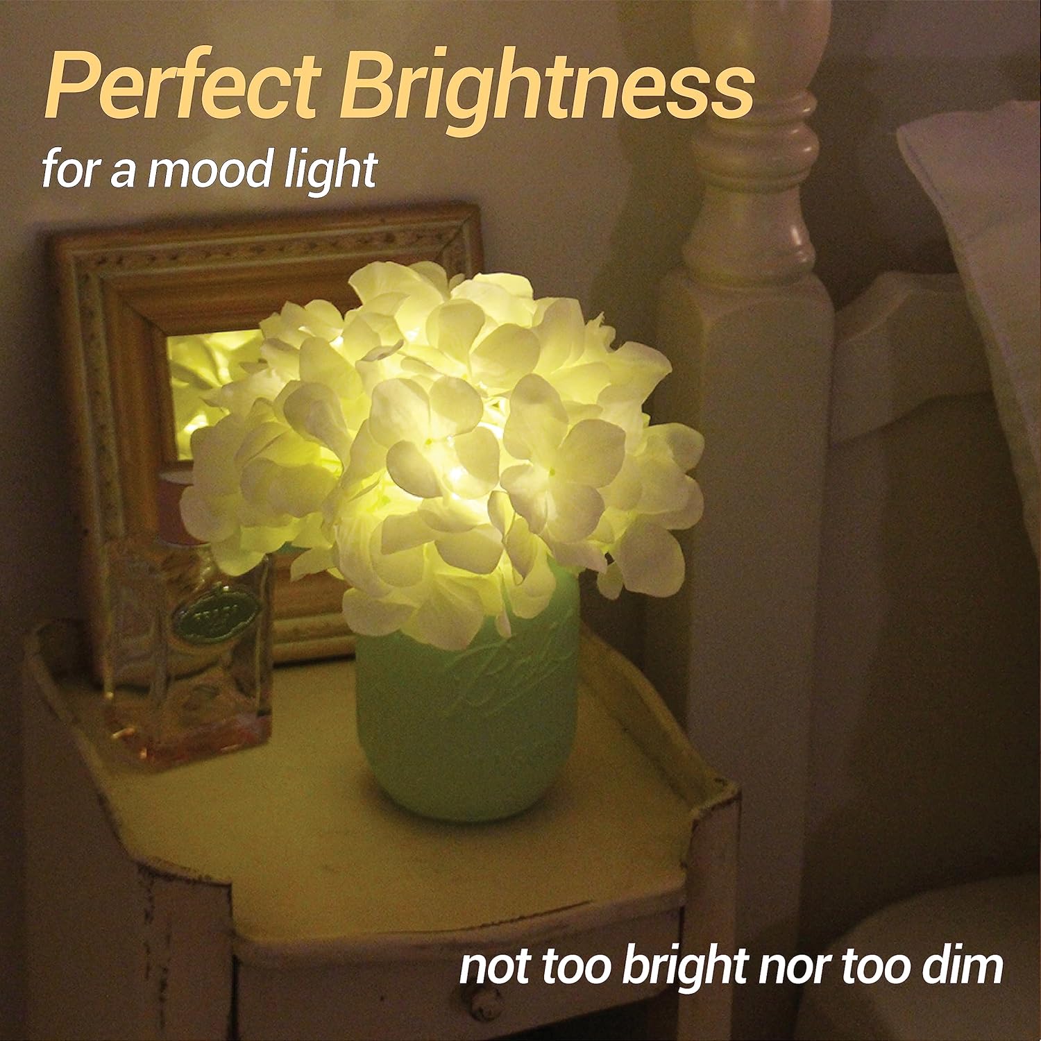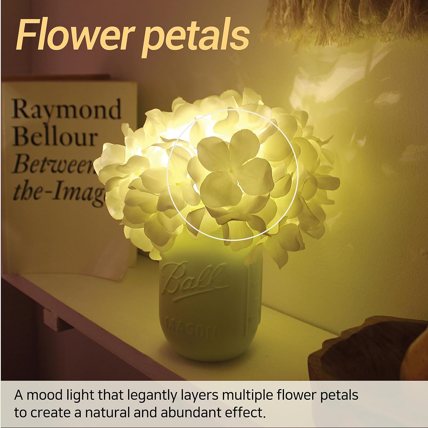 CLASSIC AESTHETIC The Mongceil Hydrangea LED mood lights come in a timeless white hue and effortlessly complement any decor style. It adds a touch of elegance and sophistication to your living space.