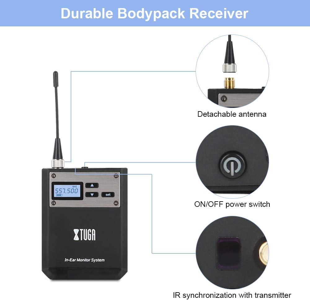 QUALITY AND TECHNOLOGY GUARANTEED – Using advanced circuit design,clear the receiving blind angle to make the system’s receiving signal steady.The system is strong, because of the housing is made by tough metal material.It is the best choice of stage performance monitor product.DEVOTED SERVICE: XTUGA audio products come with 12-month warranty